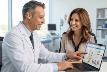 Focada em avaliação da composição corporal, análise de exames metabólicos e hormonais, e planejamento nutrológico, alimentares, com suplementos e medicamentos quando indicados.