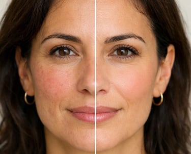 Tecnologias Vasculares: O Laser para Rosácea e Laser para Olheiras (vasculares ou pigmentares) atua seletivamente nos vasinhos e pigmentos, clareando a região com segurança. O Laser Expert Light oferece uma abordagem inovadora, tratando a superfície da pele e estimula colágeno.